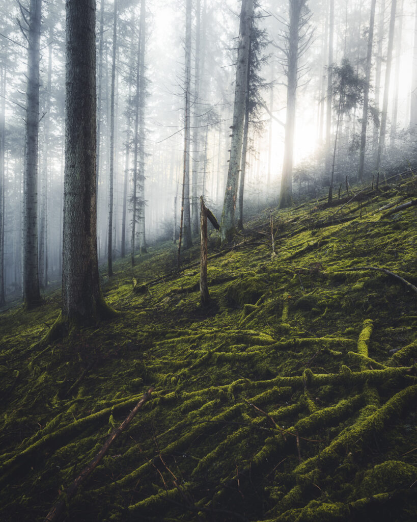Die Fotografie von mystischen Waldszenen mit verwunschenen Bäumen, moosbewachsenen Felsen, tiefen Wurzeln umringt von Nebelschwaden fängt die Magie und Geheimnisse der Natur auf eine einzigartige Weise ein. Diese Art der Fotografie schafft eine Atmosphäre von Mysterium und Zauber wie aus einer Märchenwelt, die den Betrachter in eine andere Welt entführt. Diese Art der Fotografie ist eine kreative Möglichkeit, die Schönheit und Magie der Natur einzufangen und den Betrachter in eine geheimnisvolle Welt zu entführen.